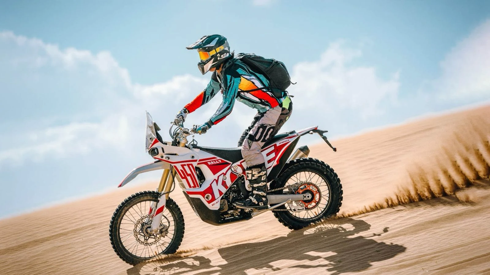 Dank Komponenten wie Aluminiumrahmen, YUAN / KYB Fahrwerk, NISSIN Bremsanlage und TFT Display verbindet die 450 Rally Rennsport-Technologie mit Alltagstauglichkeit. Dieses Motorrad bringt echtes Rallye-Feeling aus der Dakar-Welt direkt auf Straße und Offroad-Trails.