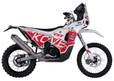 Die KOVE 450 Rally ist ein echtes Rallye-Raid Adventure Motorrad, entwickelt für Fahrer, die maximale Performance im Gelände suchen. Mit ihrem leistungsstarken 449cc Einzylinder-Motor, nur 145 kg Leergewicht und hochwertiger Rallye-Technik bietet sie ein extrem agiles und kontrollierbares Fahrerlebnis auf anspruchsvollen Offroad-Strecken.